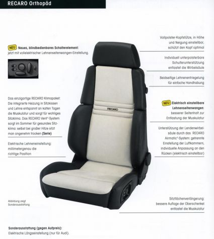 Komplett-Paket für Ihre Gesundheit.Ergonomisch und klimatisch vorbildlich: Besonders niedrige Seitenwangen und ein flaches Sitzkissen erlauben einen bequemen Ein- und Ausstieg; das einzigartige Klimapaket ist serienmäßig.