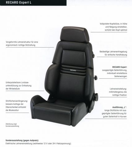 Der Experte für mobiles Sitzen - Ausführung "L".Durch individuell einstellbare Lehnenseitenwangen, die eine exakte Anpassung der Lehne an den Fahrer ermöglichen, und eine lange Sitzfläche mit hohen Seitenwangen ist der RECARO Expert L die ideale Lösung für mittelgroße bis große Personen, die auf guten Seitenhalt beim Fahren Wert legen. Die Sitzfläche mit ausgeprägter Seitenführung ist sportlich ausgelegt.