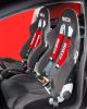 Bei den Vordersitzen vertraut man auf die handgearbeiteten Sparco Milano 2 Sitze mit Alcantarabezug. Die Sparco Milano 2 überzeugen durch ihre Qualität, bieten einen optimalen Seitenhalt bei zügigen Kurvenfahrten und einen hohen Komfort bei langen Strecken. Für die Sicherheit sorgen 3-Punkt-Gurte, die ebenfalls von Sparco stammen. Die Rückbank wurde von der G&W Autosattlerei aus Berlin so bezogen, dass sie optisch zu den Vordersitzen passt. In Verarbeitung, Material und Bequemlichkeit steht sie auf gleichem Niveau wie die Sparco Milano 2. Bei den Pedalen und dem Schaltknauf finden sich auch wieder Produkte aus dem Hause Sparco wieder. Die Pedale sind die Bestseller Sparco - Reflex und beim Schaltknauf handelt es sich um den neuen Sparco - Ergon. Als Finish befindet sich noch ein Sparco - Feuerlöscher stets einsatzbereit im Fußraum des Beifahrers.