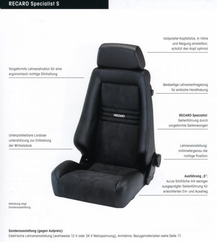 Der Einstieg in ergonomisches Sitzen - Ausführung "S".Der mit einer vorgeformten Lehnenstruktur ausgestattete RECARO Specialist S eignet sich mit seiner kurzen Sitzfläche mit weniger ausgeprägter Seitenführung besonders für kleine bis mittelgroße Personen.